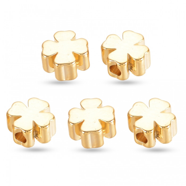 Намистини-роздільники Латунь, Клевер, Покриття Золото 18К, 5х5х3мм, Отвір 1мм, 5 шт