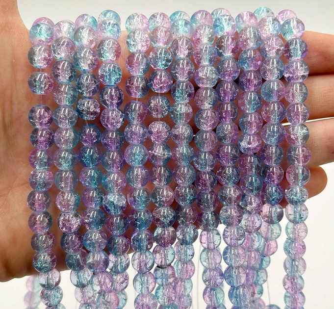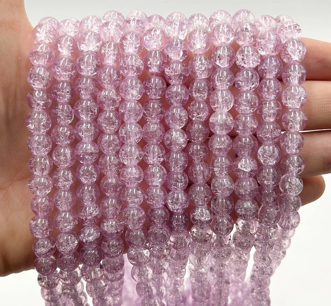 Скляні бусини "Бите стекло" / Упаковка 100шт / 8мм / Бузковий