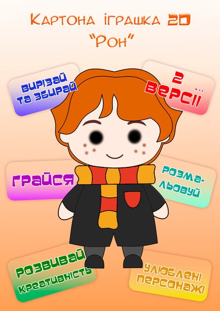 Набір для творчості та рукоділля для дітей за Гаррі Поттером «Рон» аплікація та розмальовка, поробка зроби сам
