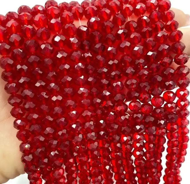 Намистини кришталеві Рондель 6х4 мм червоний прозорий (уп.90-95 шт)
