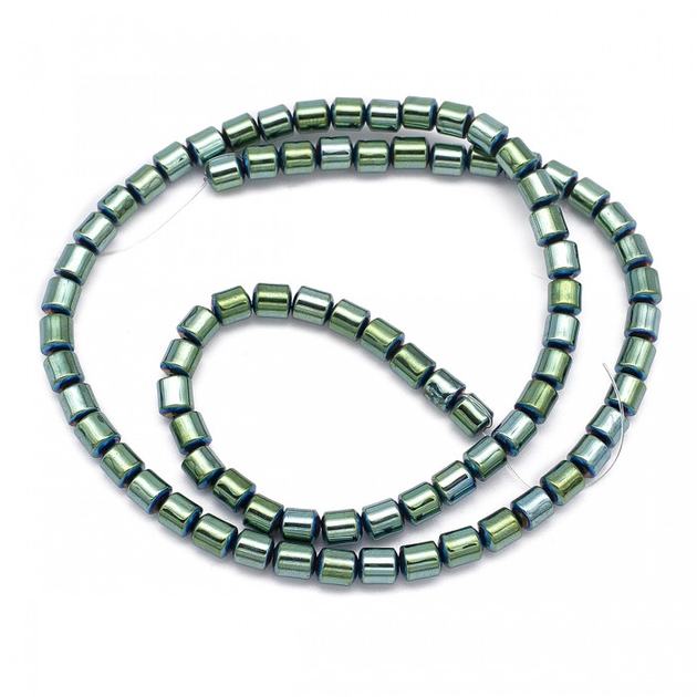 Намистини Синтетичний Гематит, на Нитках, Циліндр, Зелений, 5х4мм, Отвір 1мм, близько 70шт/40см/нитка