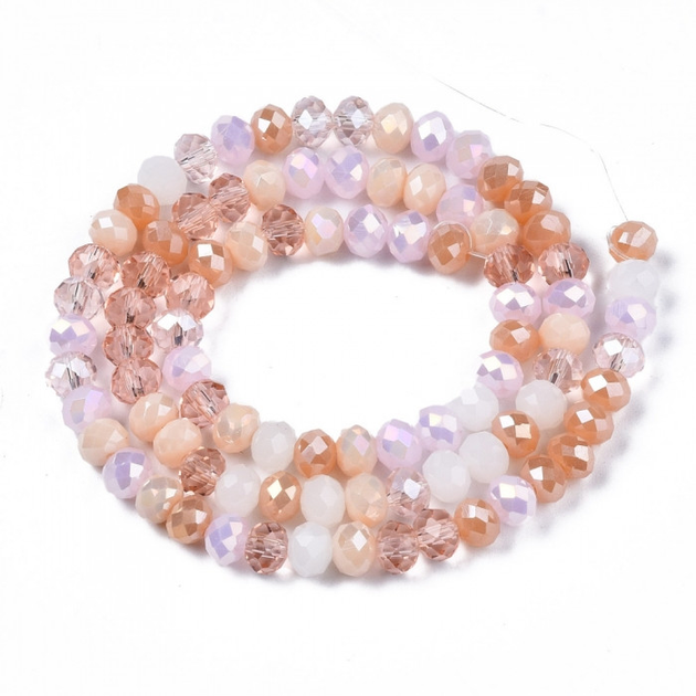 Намистини Гальваніка Скло, Грановані, Рондель, Піщано-коричневий, 5.5-6х5мм, 88шт/40см/нитка
