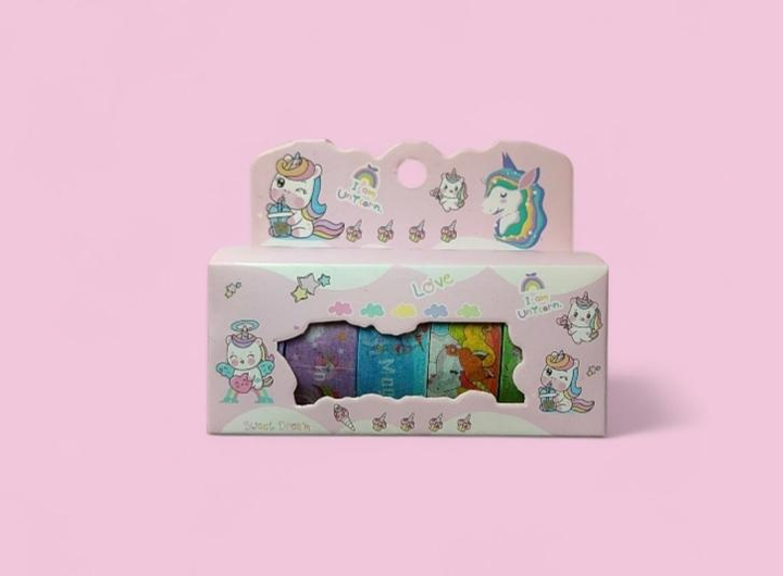 Скотч декоративний Єдиноріг 5 шт ширина 1,5 см рожева упаковка