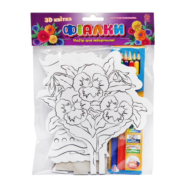 Набір для творчості Конструктор розмальовка 3Д "Фіалки" 126367 з олівцями