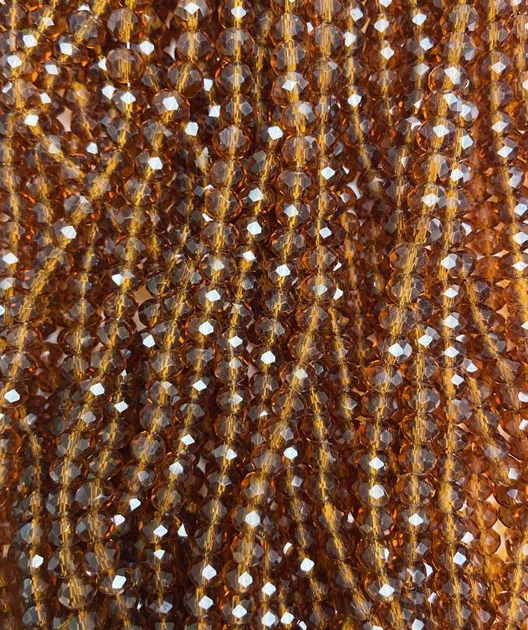 Намистини Чеський Кришталь на волосіні бурштинове прозоре гранований рондель, діаметр 6х5мм + -, довжина 40см +, ida80265