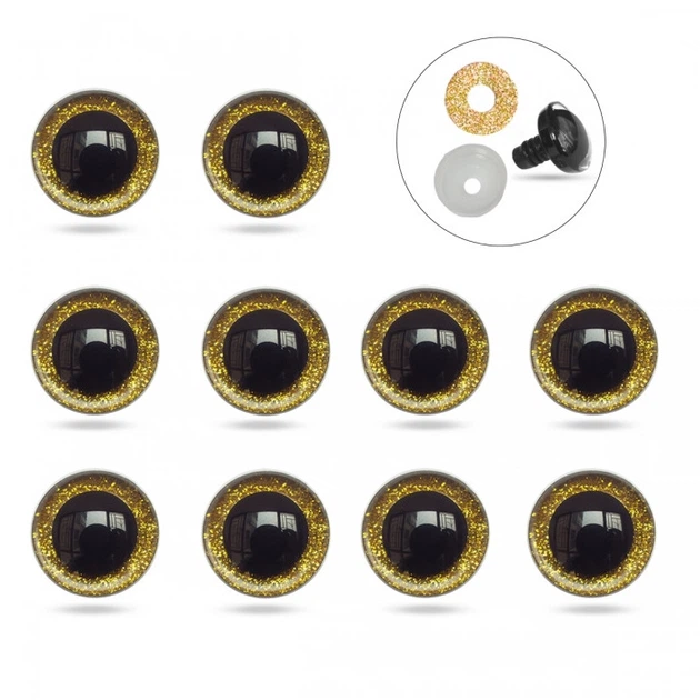 Оченята для Іграшок і Ляльок, Епоксидна Смола, 2 фіксатори, Золотисті, 12мм, 10 шт