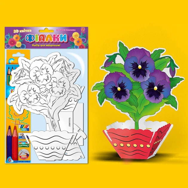 Конструктор-розмальовка 3D квітка Фіалки Набір для творчості 2000001263679