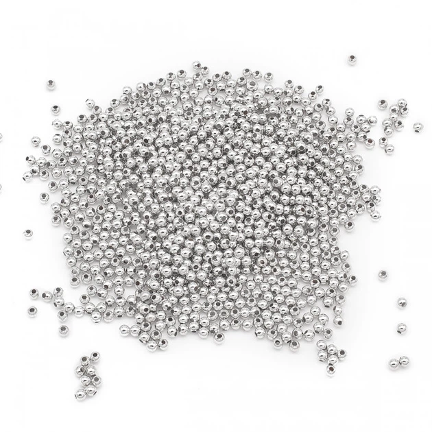 Намистини-роздільники, Залізні, Круглі, Срібло, 2х2мм, Отвір 1мм, близько 1050шт/20г