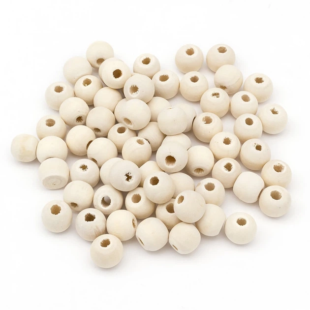 Намистини Дерев'яні Круглі, Світло-бежевий, 12мм, Отвір 2.5мм, близько 84шт/50г