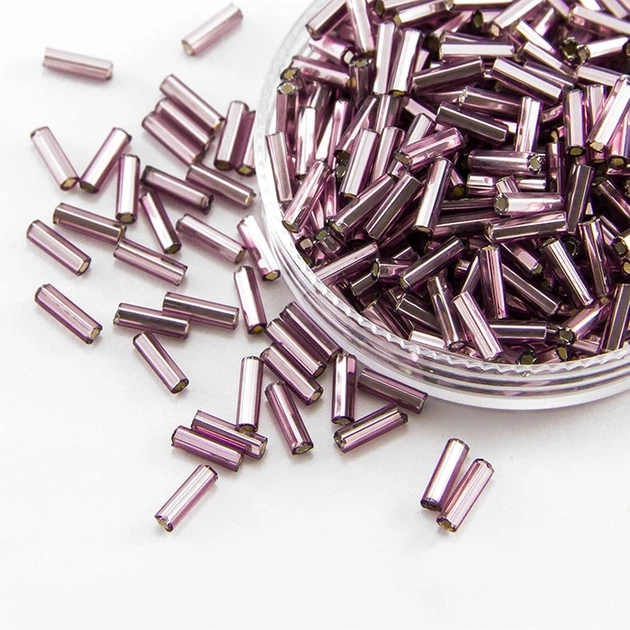 Бісер Стеклярус 35122/27010/3" Чеський Preciosa, Прозорий зі срібною смугою TSL, Фіолетовий, 50 г