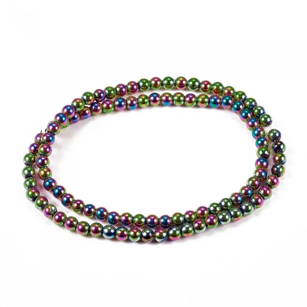 Намистини Синтетичний Гематит, на Нитках, Круглі, Мультиколір, 4мм, Отвір 1мм, близько 95шт/38см/нитка