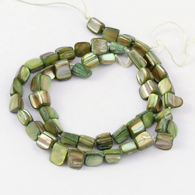 Намистини з Річкових Черепашок, Жовто-зелений, 8-17.5x5-8x5мм, Отвір 1мм, близько 40шт/40см/нитка
