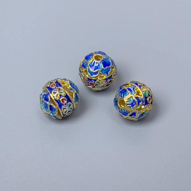 Фурнітура намистина Клуазоне синя емаль, діаметр 8мм+- отвір, діаметр 1, 5мм золотистий колір металу 1 шт, ida47484
