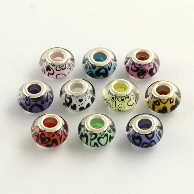 Шарми Євробусини Акрилові зі Вставкою з Латуні кольору Платина, Рондель, Мікс, 14х9мм, 5 шт