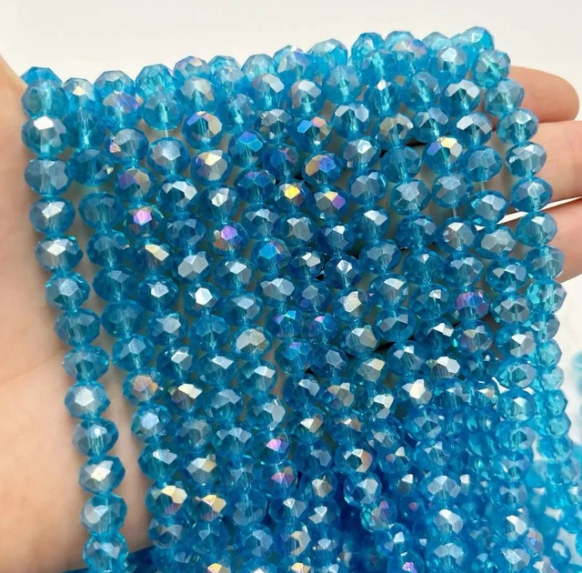Намистини кришталеві "ронделі" 8х6 мм бірюзовий прозорий з АВ (70 шт)