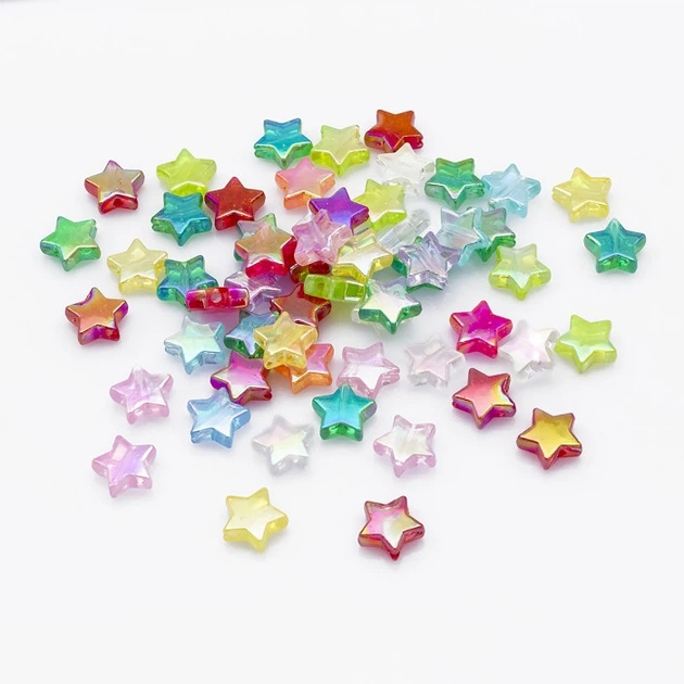 Намистини Акрил, Прозорі, АВ колір, Зірка, Мікс, 10x4мм, Отвір 1.5мм, близько 100шт/25г