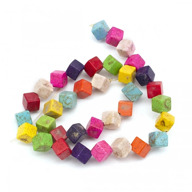 Намистини Синтетична Бірюза Кубики, Пофарбовані, Мікс, 12х12х8мм, Отвір 1мм, близько 35шт/39см/нитка