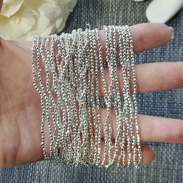 Намистини акрилові, 2 мм., гальванічне покриття, колір - срібло, 40 см.