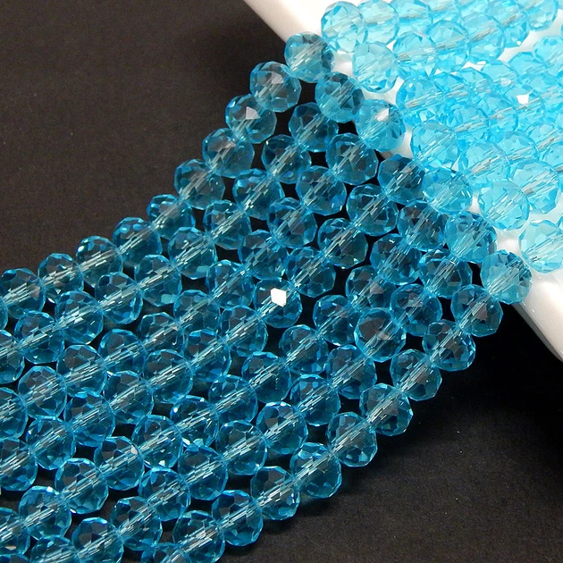 Намистини кришталеві "ронделі" 8х6 мм бірюзовий прозорий (65~ шт)