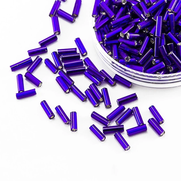 Бісер Стеклярус 35122/37100/3" Чеський Preciosa, Прозорий зі срібною смугою TSL, Синій, 50 г