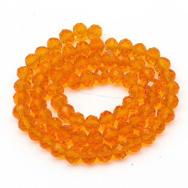 Намистини Австрійський Кришталь, Скло Грановані, Прозорі, Рондель, Помаранчевий, 8х6мм, 72шт/42см/нитка