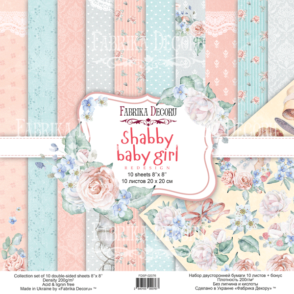 Набір скраппаперу Фабрика Декора Shabby baby girl redesign 20x20см, артикул FDSP-02076