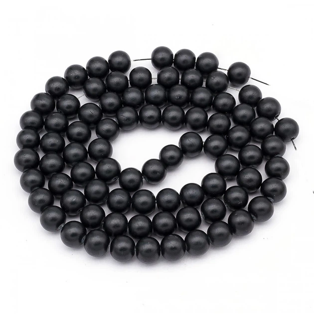 Перли Намистини Скляні, Матові, Круглі, Чорний N10, 10мм, Отвір 1,5мм, близько 83шт/83см/нитка