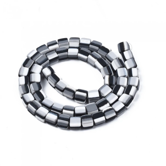 Намистини з Полімерної Глини, Ручна Робота, Кубики, Сірий, 6-7х6-7х6-7мм, Отвір 1.4мм, близько 58шт/37см/нитка