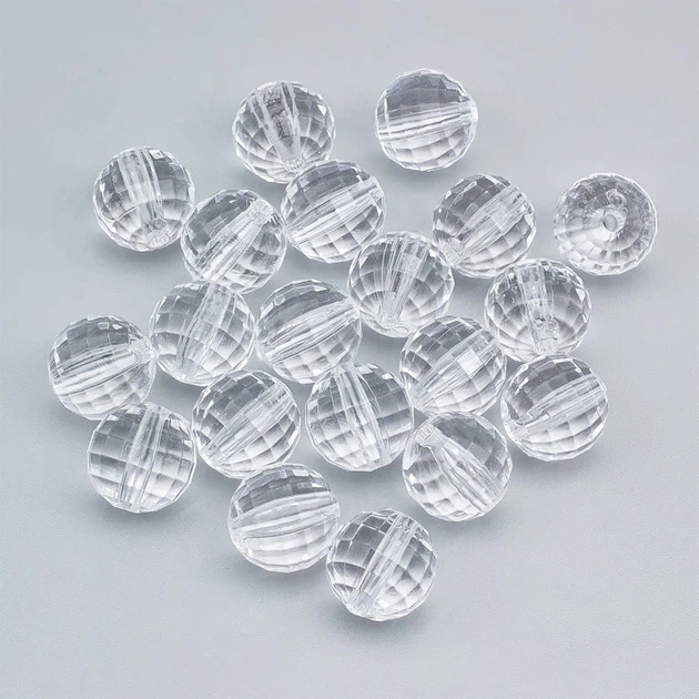 Намистини Акрилові Прозорі Грановані, Круглі, Безбарвний, 16мм, Отвір 3мм, 20 шт
