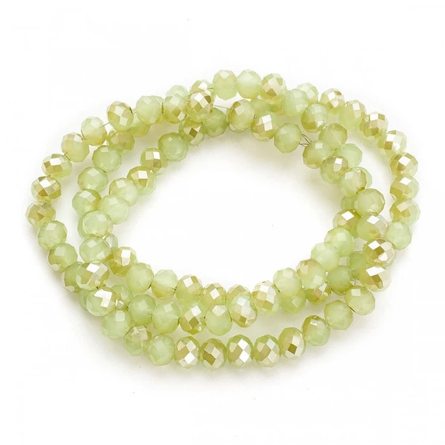 Намистини Гальваніка Скло під Нефрит, Напівпокриття, Грановані,Рондель,Темно-зелений, 6х4мм, 100шт/40см/нитка