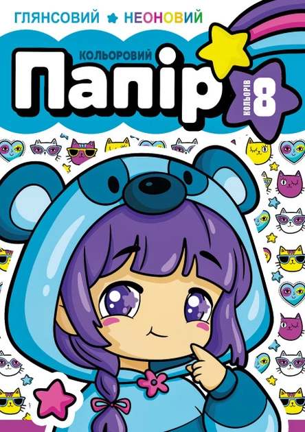 Набір паперу кольорового одностороннього глянцевого неонового, А4, 8 аркушів, 25132