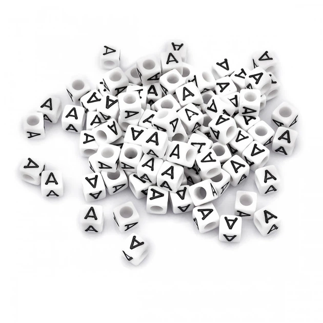 Намистини Акрилові Буква "А", Кубики, Білий, 6х6х6мм, Отвір 3.2мм, близько 130шт/25г