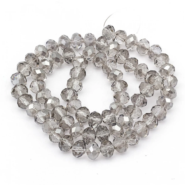 Намистини Скло з Гальванікою Грановані, Рондель, Сріблясте Напівпокриття, Світло-сірий, 8х6мм, 72шт/44см/нитка