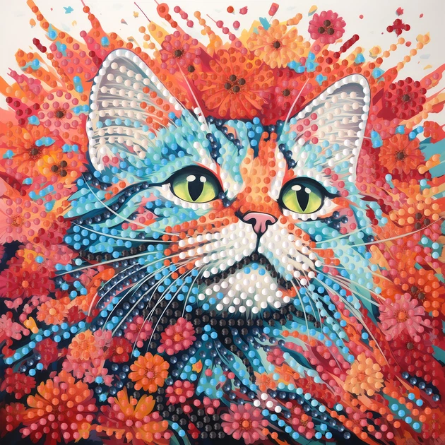 Алмазна мозаїка Strateg ПРЕМІУМ Яскравий кіт на паперовій основі розміром 18х18 см (ZAV1818-22)