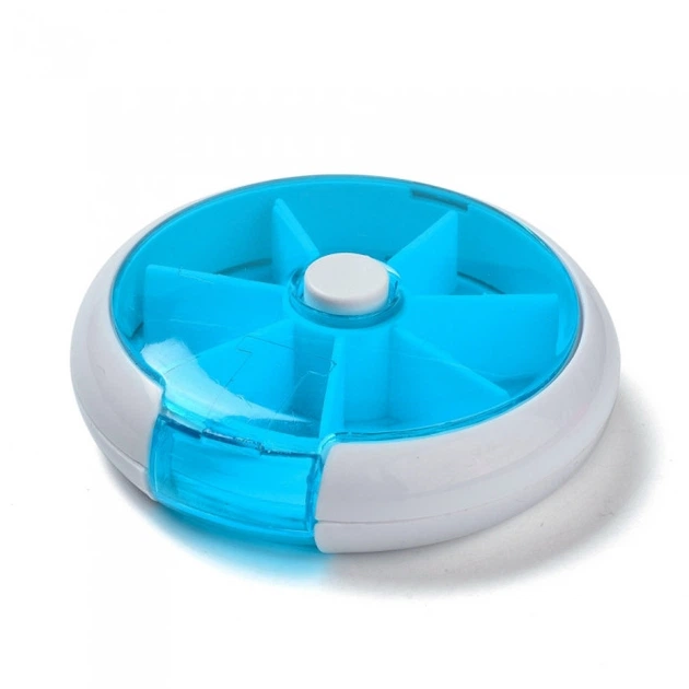Контейнер для Бісеру та Намистин, Пластик, Круглий, 7 відсіків, Блакитний, 9.05х2.4см, Відсік: 28х13мм, 1 шт