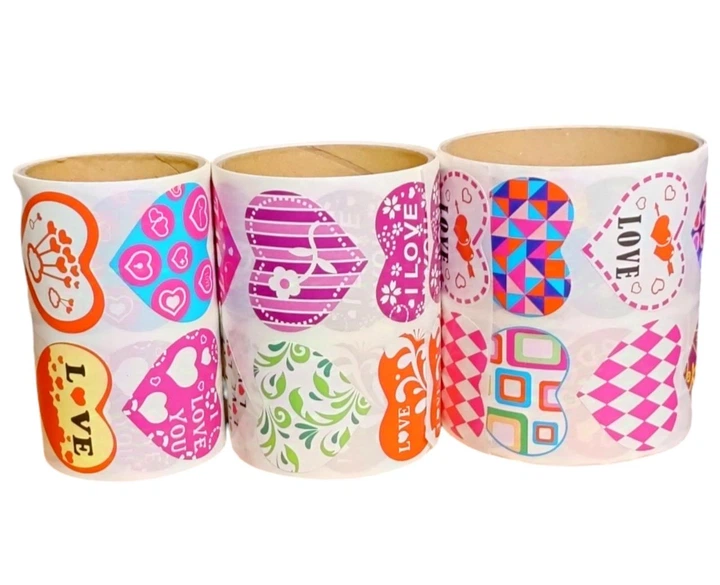 Набір етикеток 3 рулони Outanaya для скрапбукингу, стікери сердечка в різмому дизайні 4 х 4 см