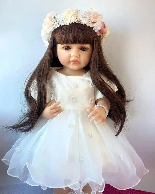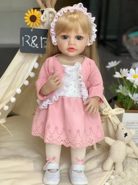 Велика вінілова лялька 55 см ручної роботи Reborn Baby Doll зі справжнім волоссям та красивими очима.