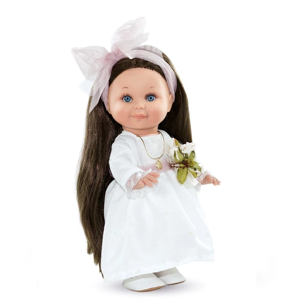 Іспанська Вінілова Лялька Lamagik Дівчинка Брюнетка Бетті 30 см з Ванільним Ароматом і Довгим Волоссям в Ошатній Білій Сукні