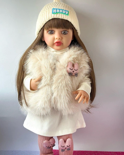 Велика вінілова лялька в кожушку Reborn Baby Doll зі справжнім волоссям і живими очима