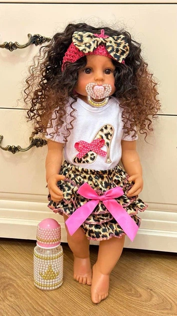 Велика вінілова лялька МУЛАТКА ручної роботи Reborn Baby Doll зі справжніми кучерями і гарними очима