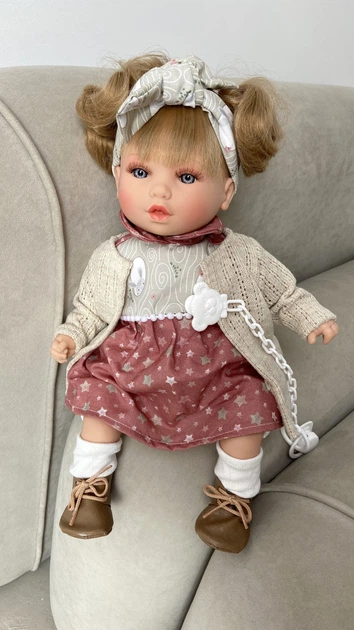 Вінілова лялька Marina Pau 40 см блондинка дівчина з хвостиками і пов'язкою для гри і колекціонування (578708)