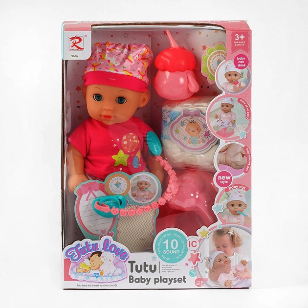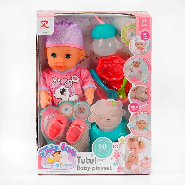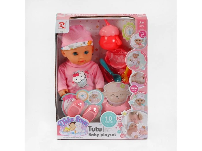Пупс Tutu Baby playset з музичним чіпом, видає характерні звуки та фрази, заплющує очі, з аксесуарами (9563)