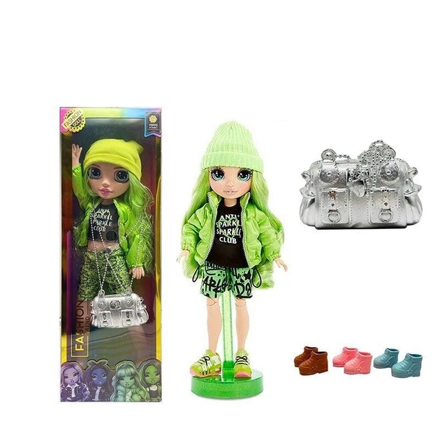 Лялька TK 2043 15 см шарнірні суглоби аксесуари наліпки парк розваг в коробці 25 см 7 см 20 см зелена з фіолетовим волоссям