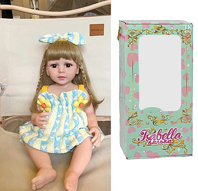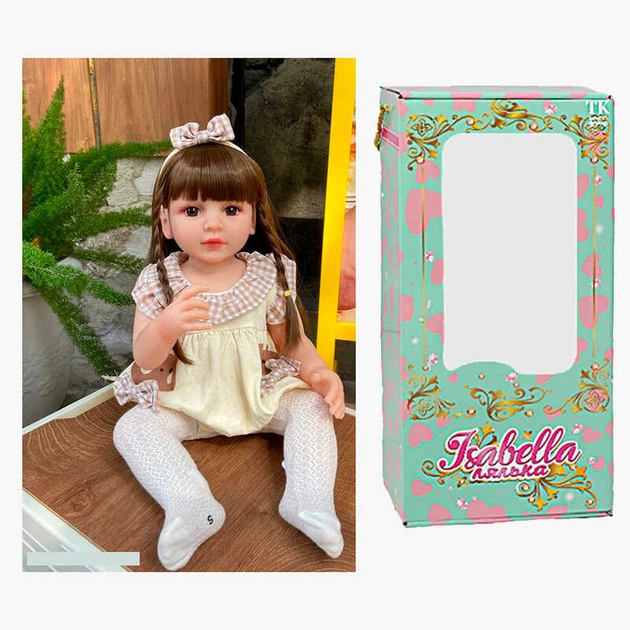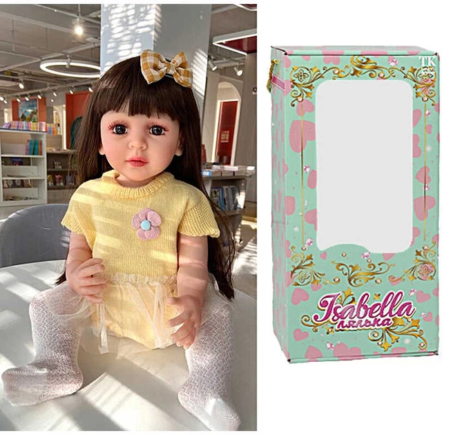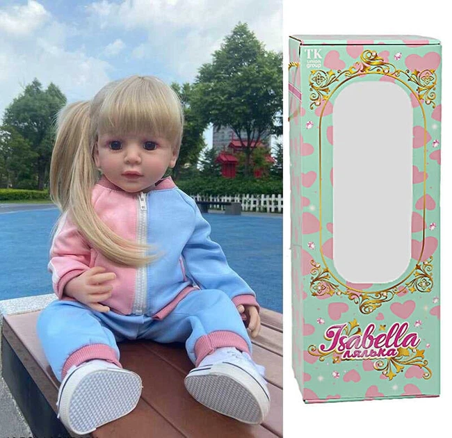 Кукла QM 100 "TK Group", висота: 50 см, гумова, імітація скляних очей, пустушка, пляшечка, памперс, носки, коробці