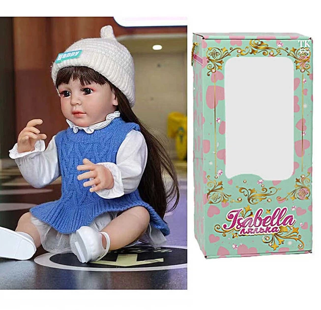 Кукла QM 150 "TK Group", висота: 50 см, гумова, імітація скляних очей, пустушка, пляшечка, памперс, шляпка, взуття, в коробц