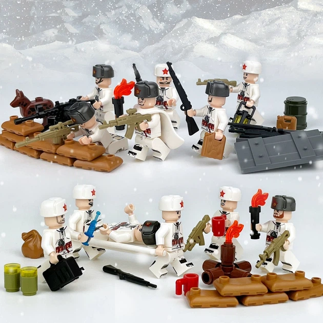 Солдати в зимовій формі зі зброєю та базою, 12 фігурок з аксесуарами