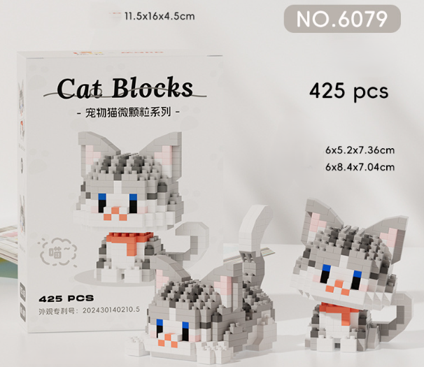 Конструктор 3D фігурка Котик "Сільвер" сірий кіт у 2-х позах міні блоки Cat bloks 425 деталей (SVS)