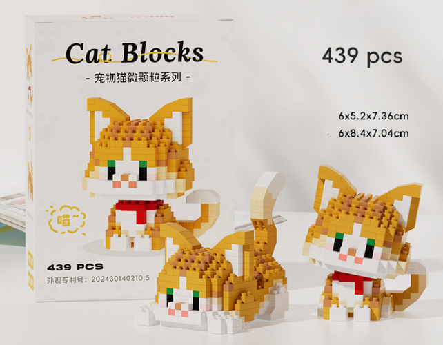 Конструктор 3D фігурка Котик "Фелікс" рудий кіт у 2-х позах міні блоки Cat bloks 439 деталей (SVS)