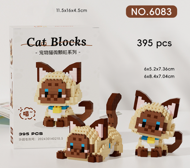 Конструктор 3D фігурка Кішечка "Агата" сіамський котик у 2-х позах міні блоки Cat bloks 395 деталей (SVS)