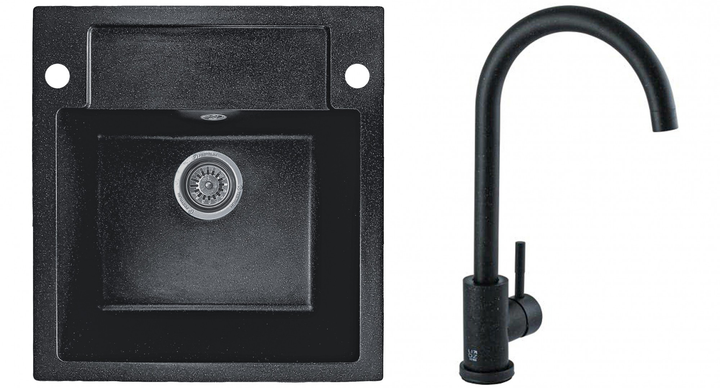 Мийка кухонна, гранітна, квадратна Valetti 69D 52х49см Чорна + змішувач